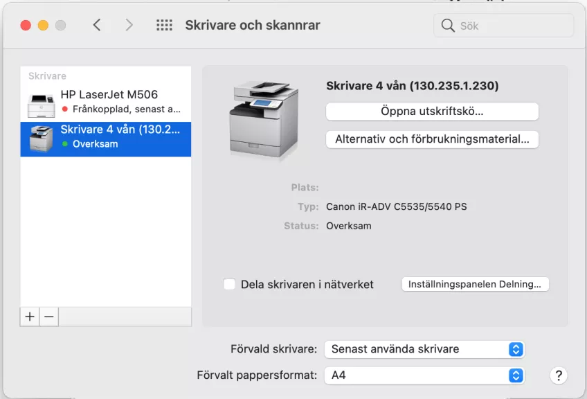 How to install the driver for the Canon printer on the 4th floor on your Mac. Please note that you must be logged in to our network (Eduroam) to access the printer.